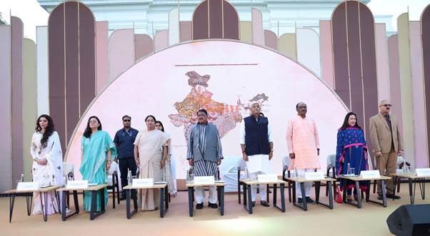 The valedictory ceremony commenced with the arrival of dignitaries and a walkthrough of the exhibition, followed by the rendition of the National Song Vande Mataram. The event was graced by Shri Jual Oram, Hon’ble Union Minister of Tribal Affairs, as the Chief Guest. Shri Gajendra Singh Shekhawat, Hon’ble Union Minister of Culture and Tourism, Smt. Rekha Gupta, Hon’ble Chief Minister of Delhi, and Shri Durgadas Uikey, Hon’ble Minister of State for Tribal Affairs, attended as Guests of Honour. Ms. Jai Madaan, noted influencer, and Smt. Jyotsna Suri from FICCI were also present on the occasion along with senior officials from the Ministry of Tribal Affairs.